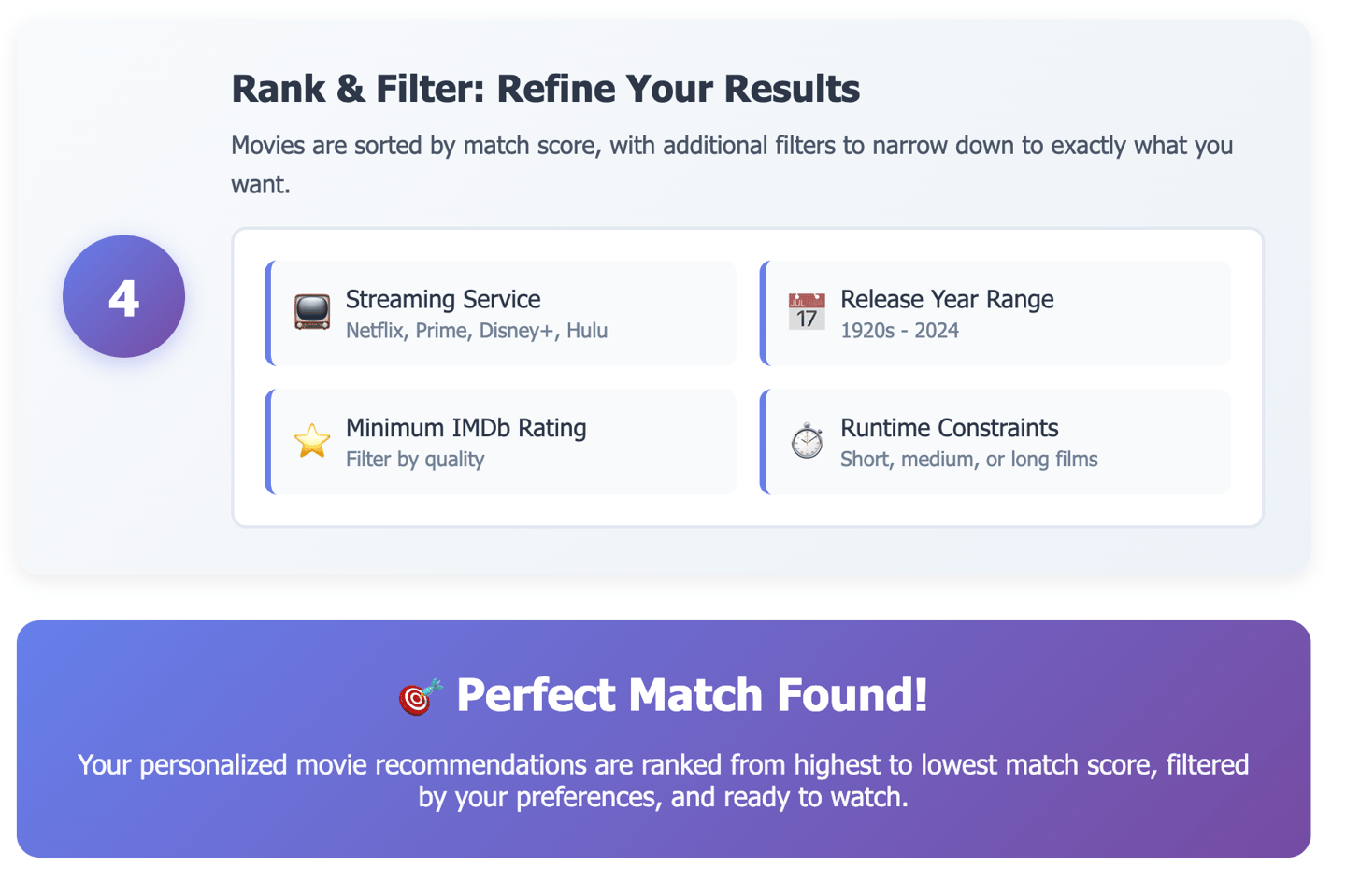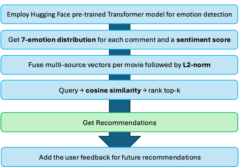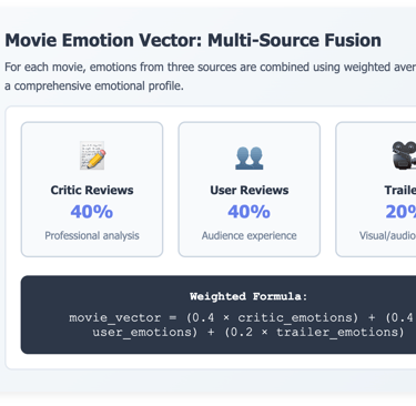 By combining these three sources, the system creates a comprehensive emotional profile for each movie.
