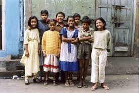 Children of Sonagachi pose together outside a building in Kolkata's red-light district for the cover of a 2004 Indian-American documentary film Born into Brothels